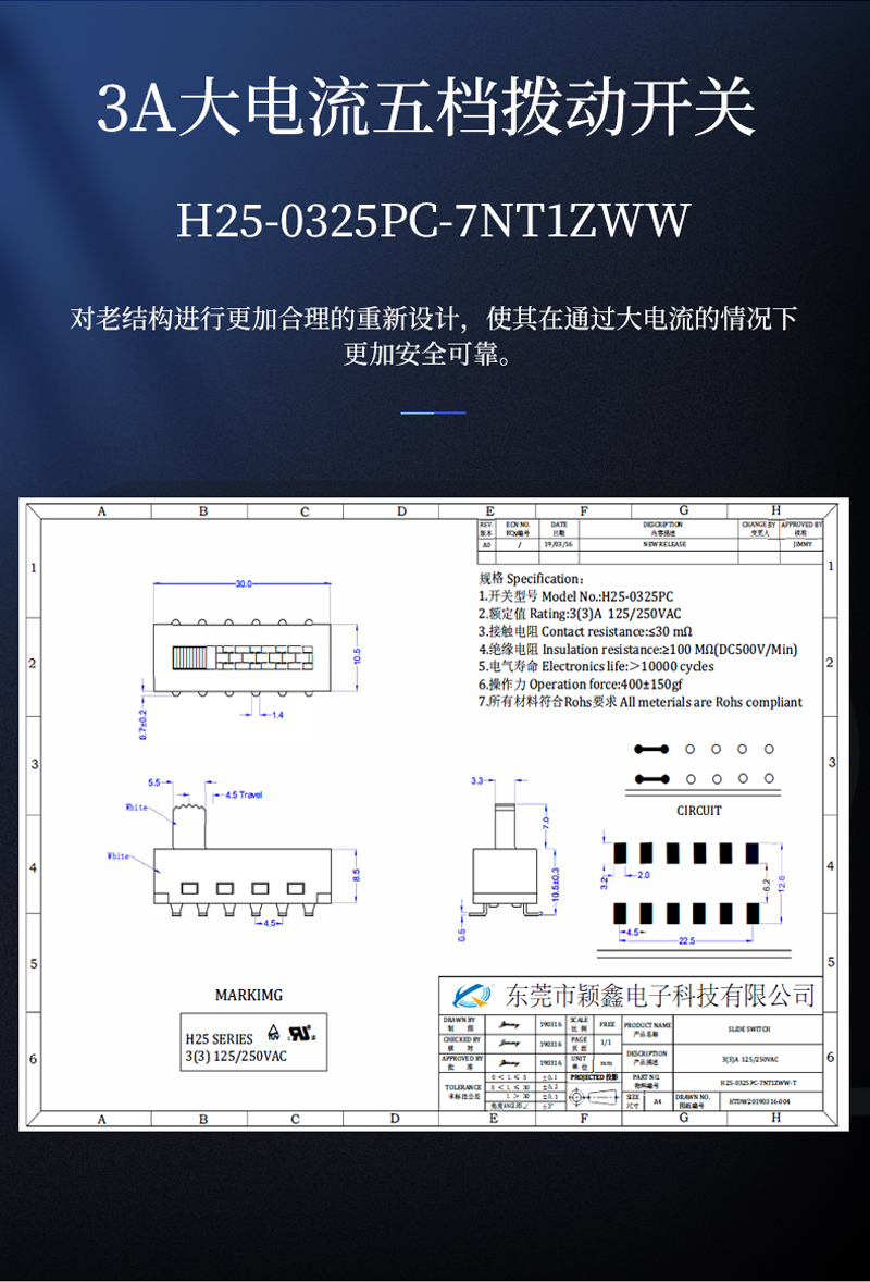 12腳3A撥動開關
